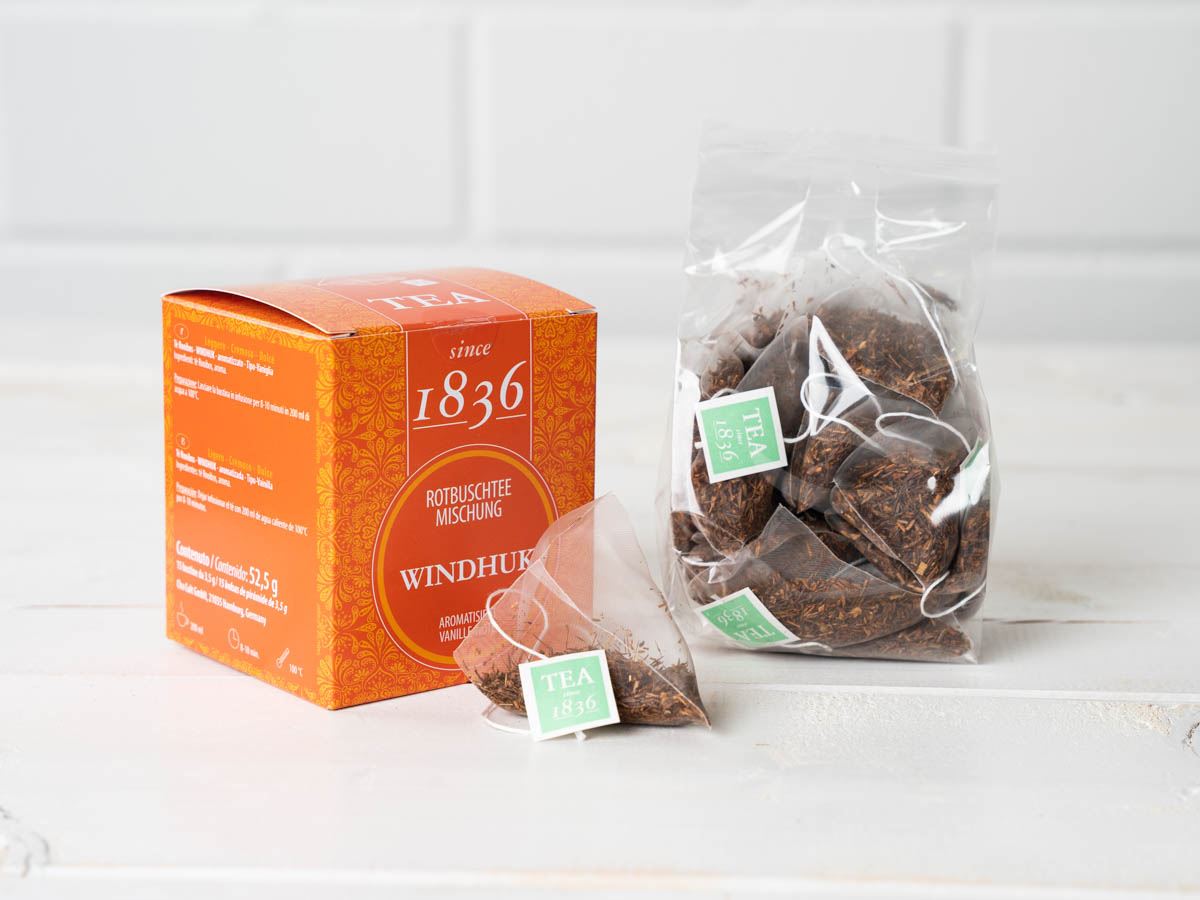 Rotbuschteemischung Windhuk Vanille mit 15 Pyramidenbeutel à 3,5g